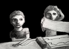 De afbeelding toont een ouderwetse polygraaf (vereenvoudigde weergave), die het huidgeleidingssignaal met een pen op papier registreert. Tegenwoordig wordt het signaal gedigitaliseerd.